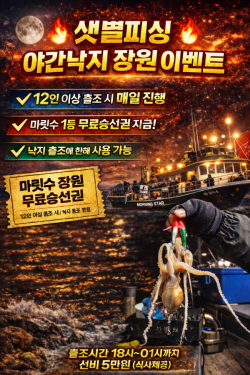#샛별피싱 #명절출항#주간원도권문어 #야간낙지 #주간열기볼락■■■ 2월11일 야간낙지 조황 ■■■소수인원 모시고 야들야들 맛있는 낙지 잡고 왔습니다어제는 기상도 좋고 마릿수도 베리베리 나이스 굿~~초반부터 감을 빨리 잡았으면 20수 오버는 가능 할듯했는데 조끔 아쉽지만 그래도 마릿수는 좋았습니다장원 16수,14수,13수,10수~오늘은 내가 주인공이다~~~장원1분께(티타늄 합사가위 셋트 증정)준장원(14마리)3등(13마리)■■■ 이번주 출조 일정표 ■■■12일 목요일 주간열기볼락 4명 예약중 주간 문어 4명 예약중 야간낙지 3분예약중13일 금요일 주간문어 2분 예약중14일 토요일 주간문어
